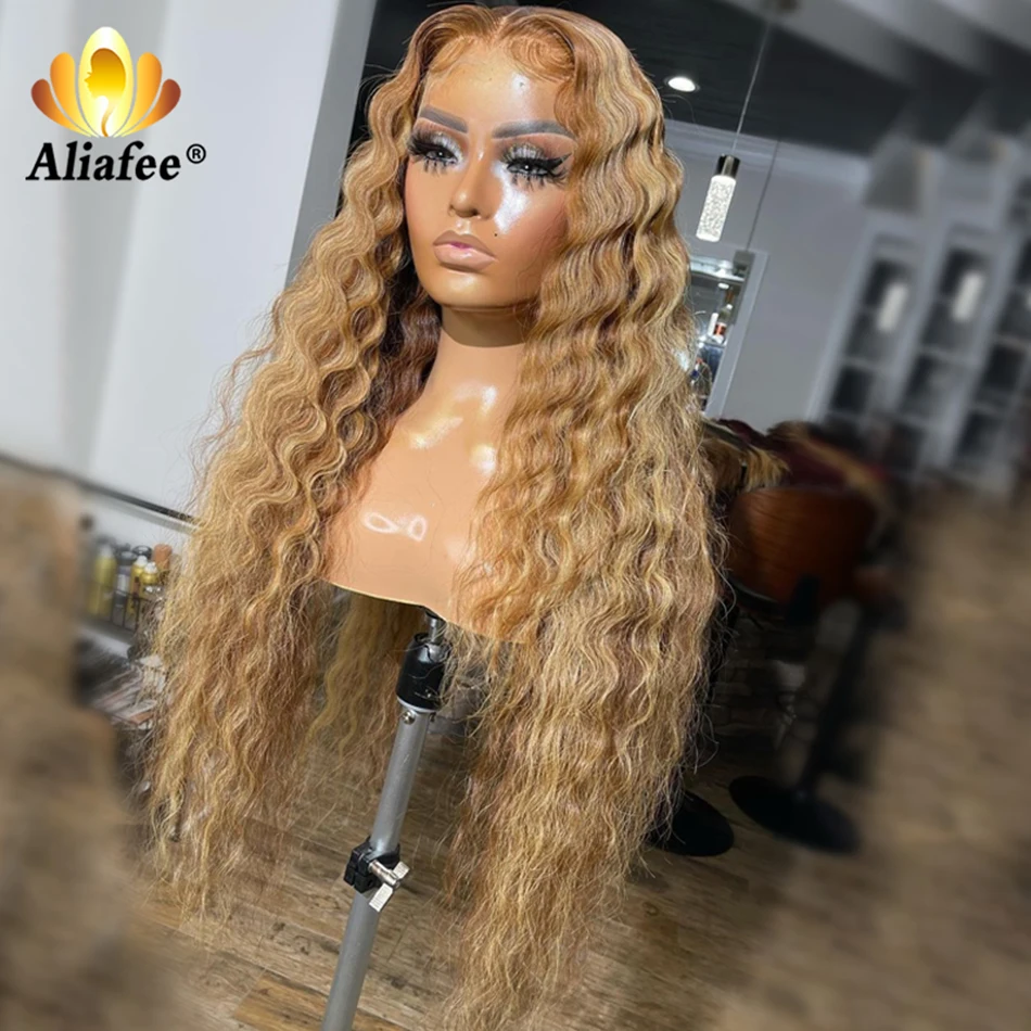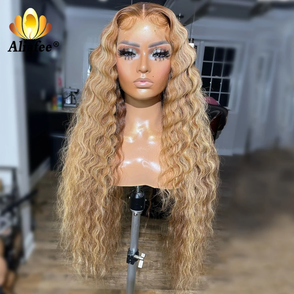 Transparent Honey Blonde Deep Wave Lace Front Wigs Pre-Plucked 13x4 Lace Frontal Wigs Highlight Wigs Human Hair Wigs For Women